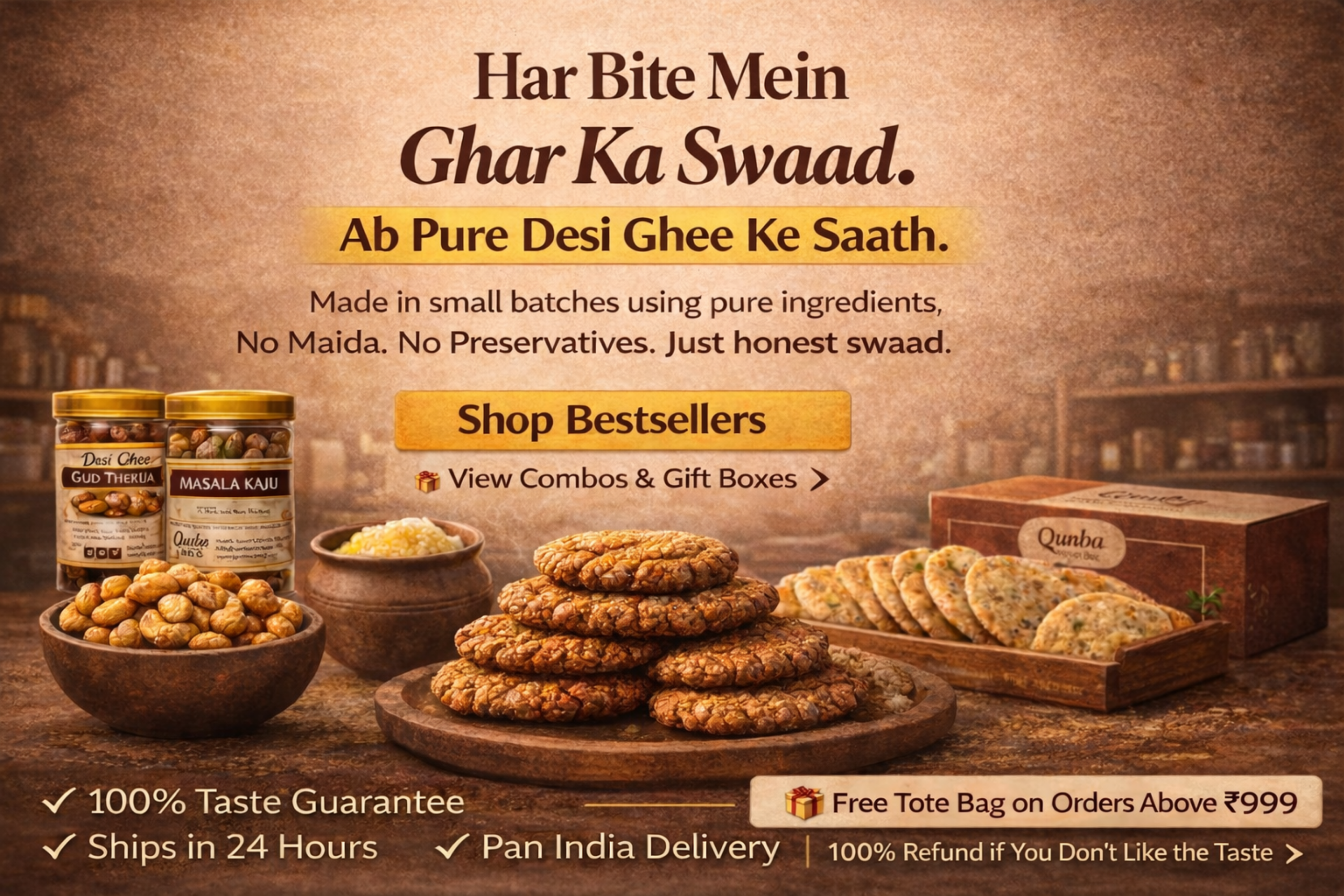 Desi Ghee Gud Thekua | Kaaju Masala - Combo (400 Each)